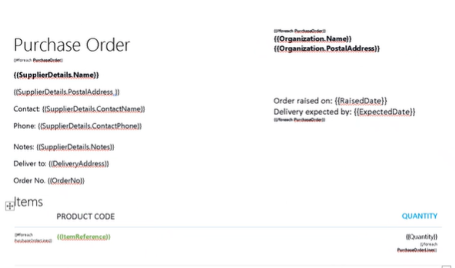 To do so, create a new purchase order template, remove the description keywords, and insert the {{ItemReference}} keyword. This will ensure that only the supplier reference is displayed on the purchase order sent to your suppliers, avoiding any confusion with item names.
