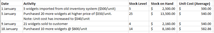 The unit cost of managed materials is calculated using the perpetual average inventory accounting method, which means that the unit cost reflects the cost of buying the current stock (including freight and other landing costs), even if it was purchased over different dates at different prices.